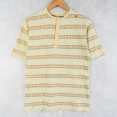 60〜70's Career Club USA製 ジャガードボーダー柄 ヘンリーネックTシャツ L [139250]