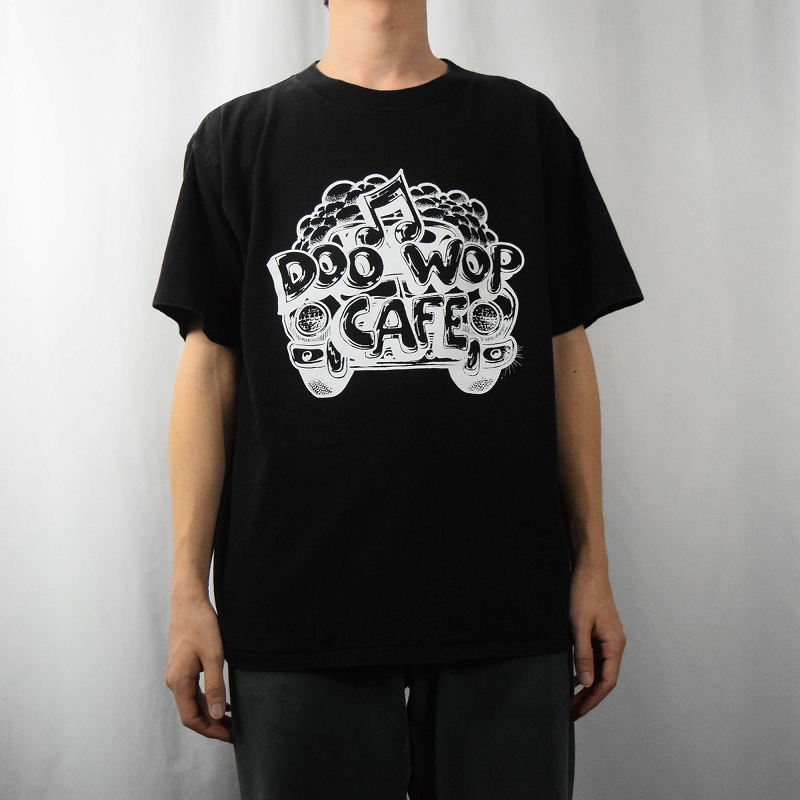 90's USA製 "DOOWOP CAFE" プリントTシャツ BLACK L [139711]