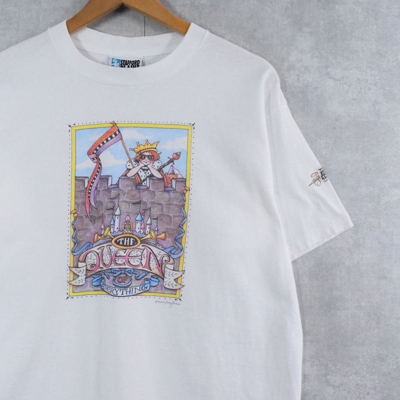 90's Mary Engelbreit USA製 "THE QUEEN EVERYTHING" イラストプリントTシャツ L [140038]