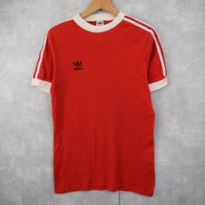 80's adidas ロゴプリントリンガーTシャツ XL [140503]