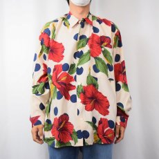90's〜 International Male ハイビスカス柄 レーヨン×ポリエステルシャツ L [140821]