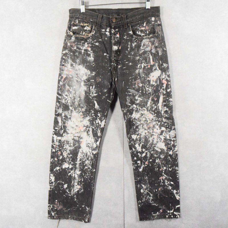 90's Levi's USA製 501 ペンキペイント ブラックデニムパンツ W31 [141769]