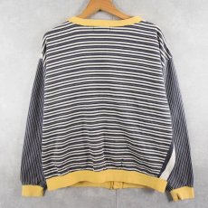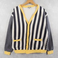 80〜90's MICHEL SPORT ストライプ×ボーダー柄 クレイジーパターン スウェットカーディガン S [141907]