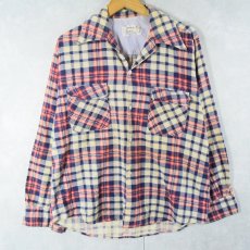 70's Fleetline チェック柄 オープンカラープリントネルシャツ M [142650]