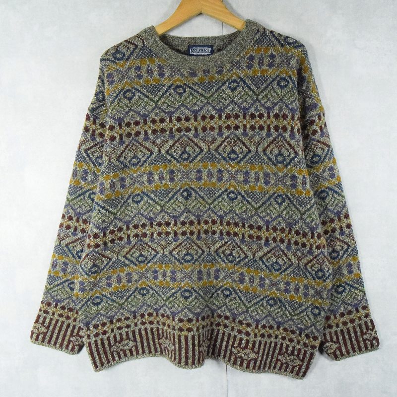 90's LANDS'END SCOTLAND製 ノルディック柄 ウールニットセーター L [142727]