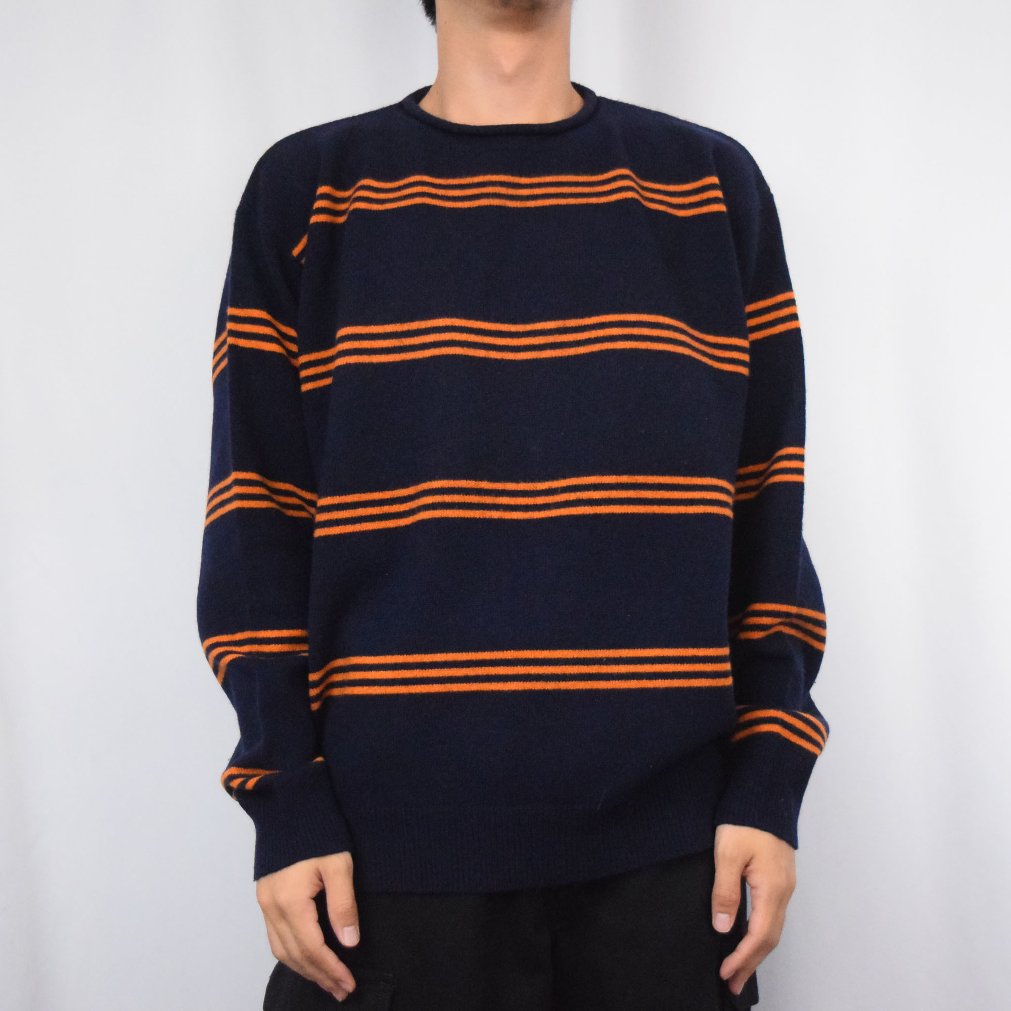 POLO Ralph Lauren ボーダー柄 ロールネック ウールニットセーター NAVY L [142768]