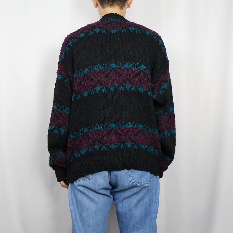80〜90's Eddie Bauer 総柄 コットンニットセーター BLACK XL [143871]