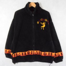 90's BEAR RIDGE ココペリ柄 フリースジャケット BLACK M [143998]