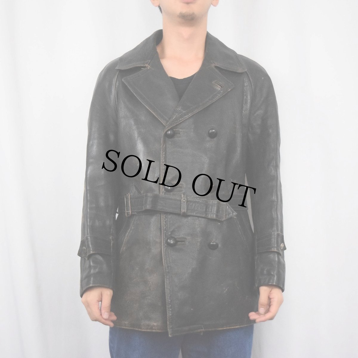 VINTAGE EURO フレンチ ダブルブレストレザーコート [144282]