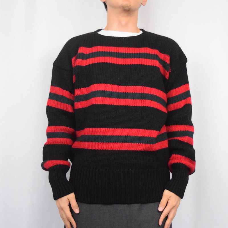 90's POLO Ralph Lauren ボーダー柄 ウールニットセーター BLACK M [144517]