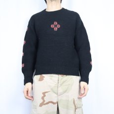 50's〜 柄織り ウールニットセーター BLACK M [144701]