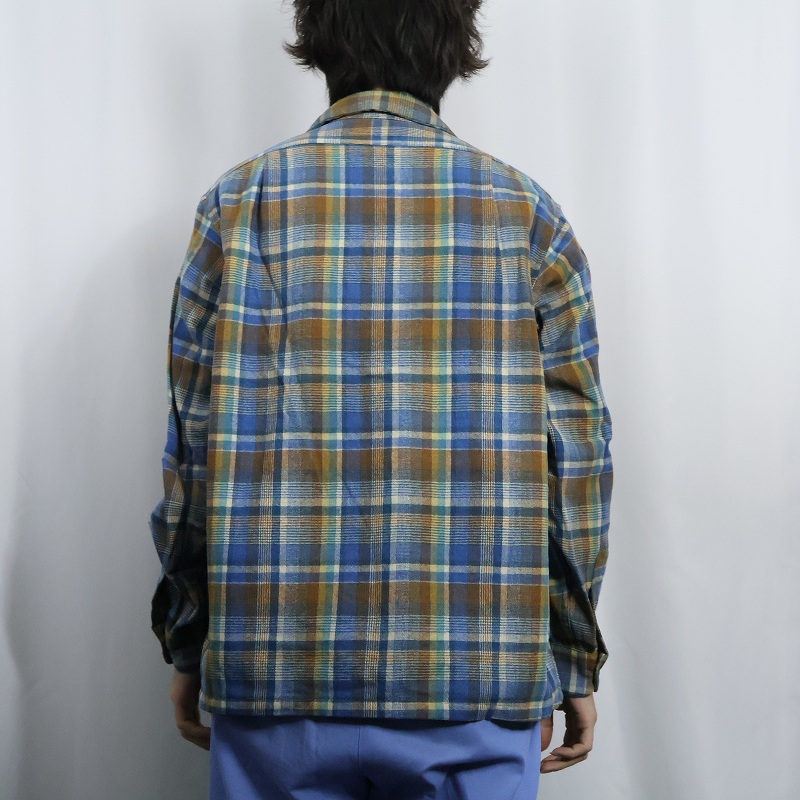 70's PENDLETON USA製 チェック柄 オープンカラーウールシャツ L [145078]