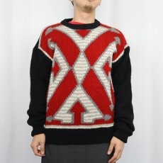 80's Pringle 柄織り ウールニットセーター M [145207]