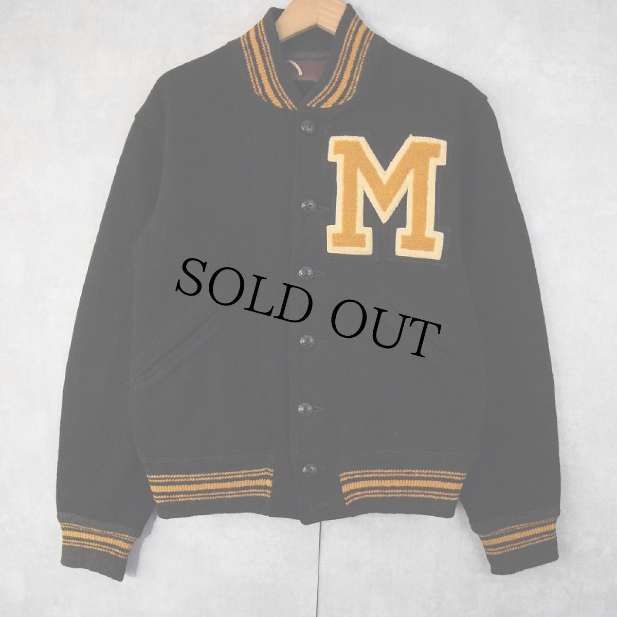 50's パッチ付き メルトンウール ボタンスタジャン BLACK [145285]