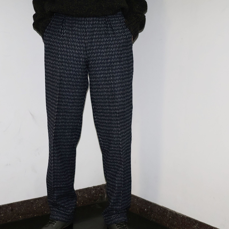 70's〜 WHITE WASH 柄織り 2タック ウール×ポリエステル テーパードスラックス W30 [145355]