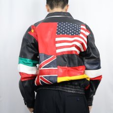 80〜90's 国旗柄 レザージャケット BLACK 40 [145426]