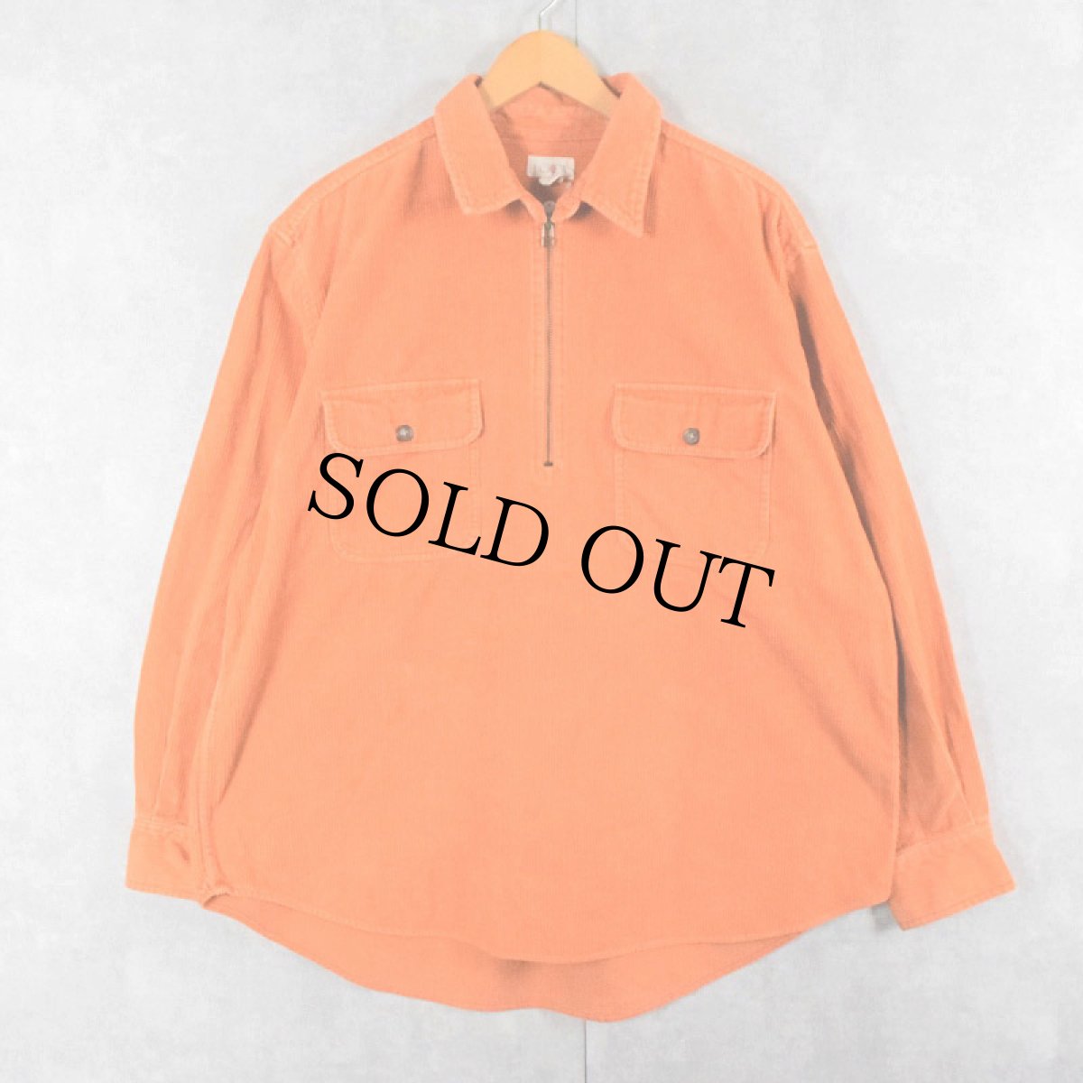 90's J.CREW ハーフジップ 太畝コーデュロイシャツ L [145490]