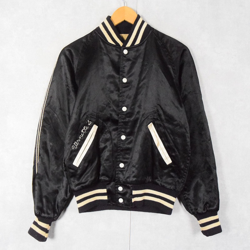 60's〜 SPORT KING ATHLETIC CLOTHING チェーン刺繍 サテンスタジャン BLACK SIZE36 [145788]