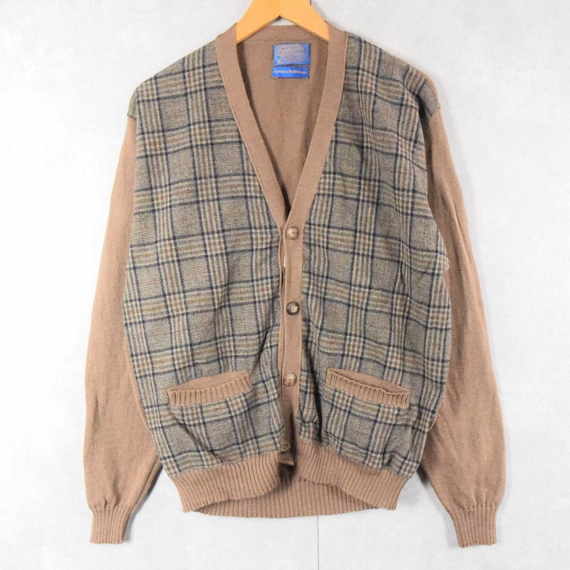 70's Pendleton USA製 チェック柄 ウールニットカーディガン L [146175]
