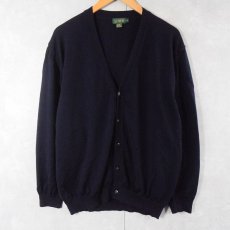 90's J.CREW ITALY製 メリノウールニットカーディガン NAVY L [146234]