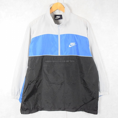 80's NIKE 紺タグ 切り替えデザイン ハーフジップナイロンジャケット L [146391]