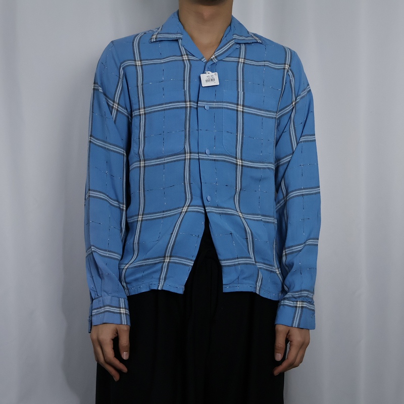 50's PENNEY'S TOWNCRAFT チェック柄 コットン×レーヨン オープンカラーシャツ S [146458]