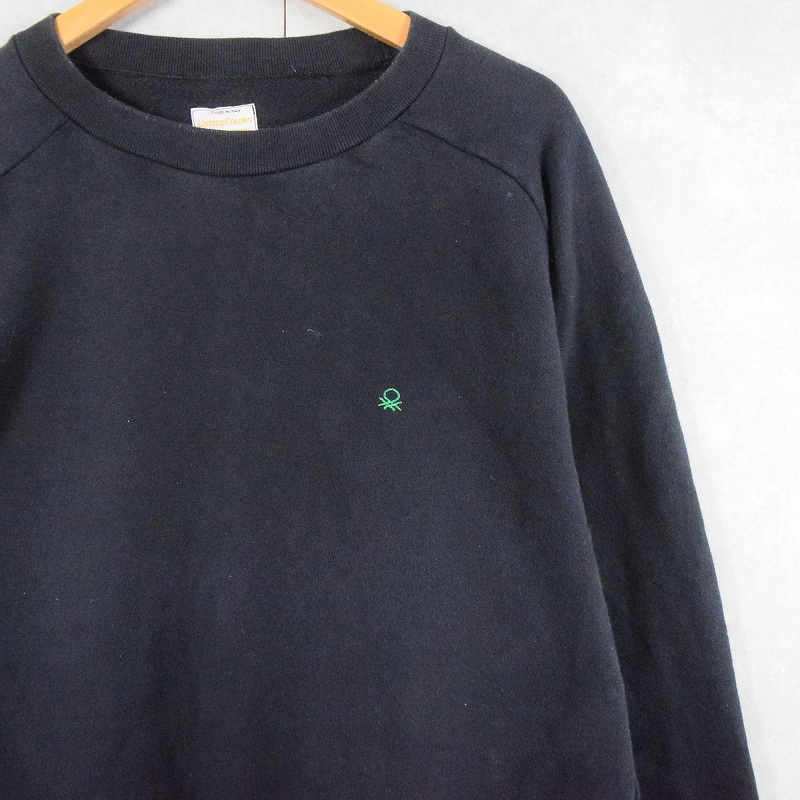 90's United Colors of Benetton ITALY製 ロゴ刺繍 ラグランスウェット BLACK XL [146543]