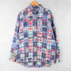 90's Brooks Brothers インディアンマドラスチェック柄 パッチワーク コットンボタンダウンシャツ L [146756]