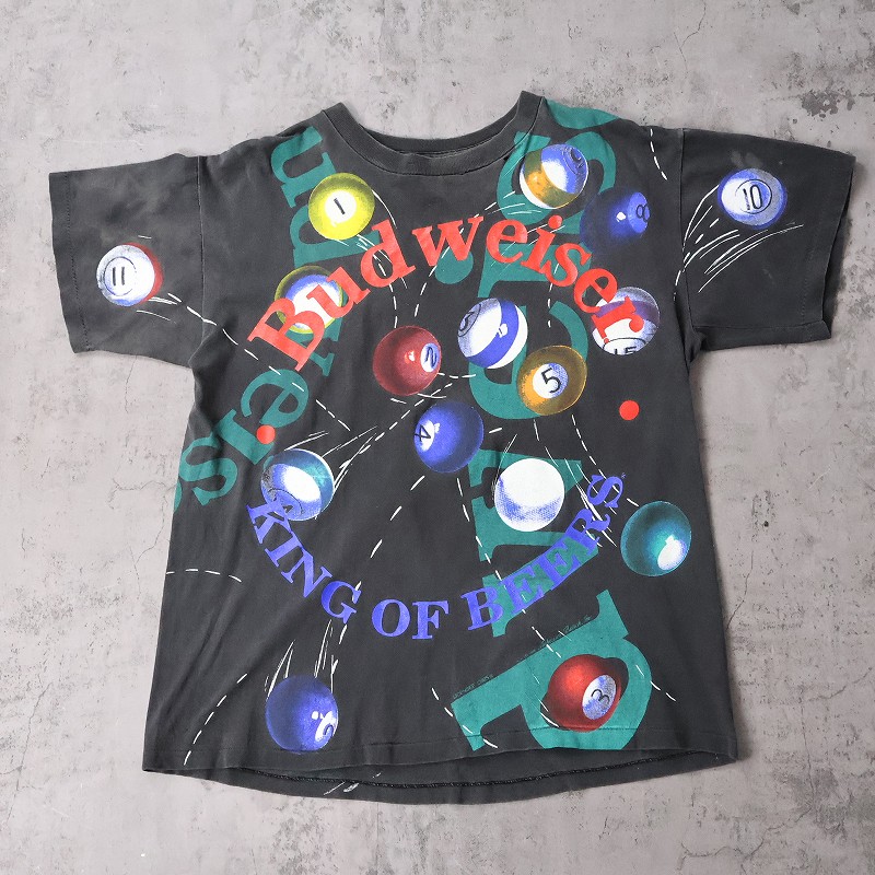 90's Budweiser USA製 ビリヤード柄 大判プリントTシャツ BLACK XL [147289]