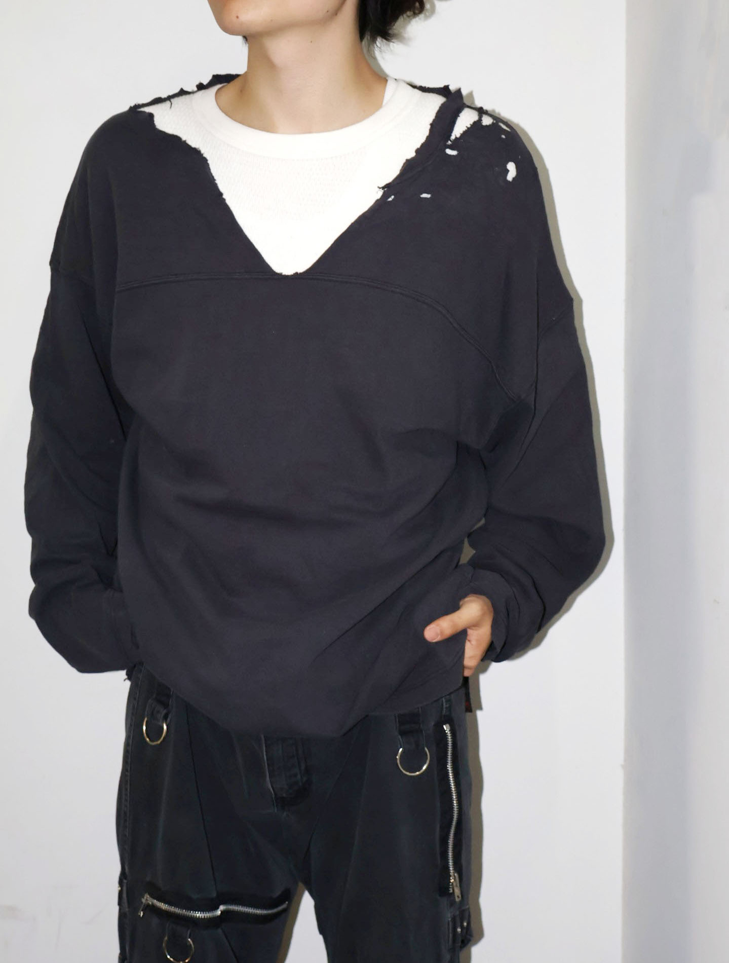 - ダメージがあり、古着らしい雰囲気の一着です。