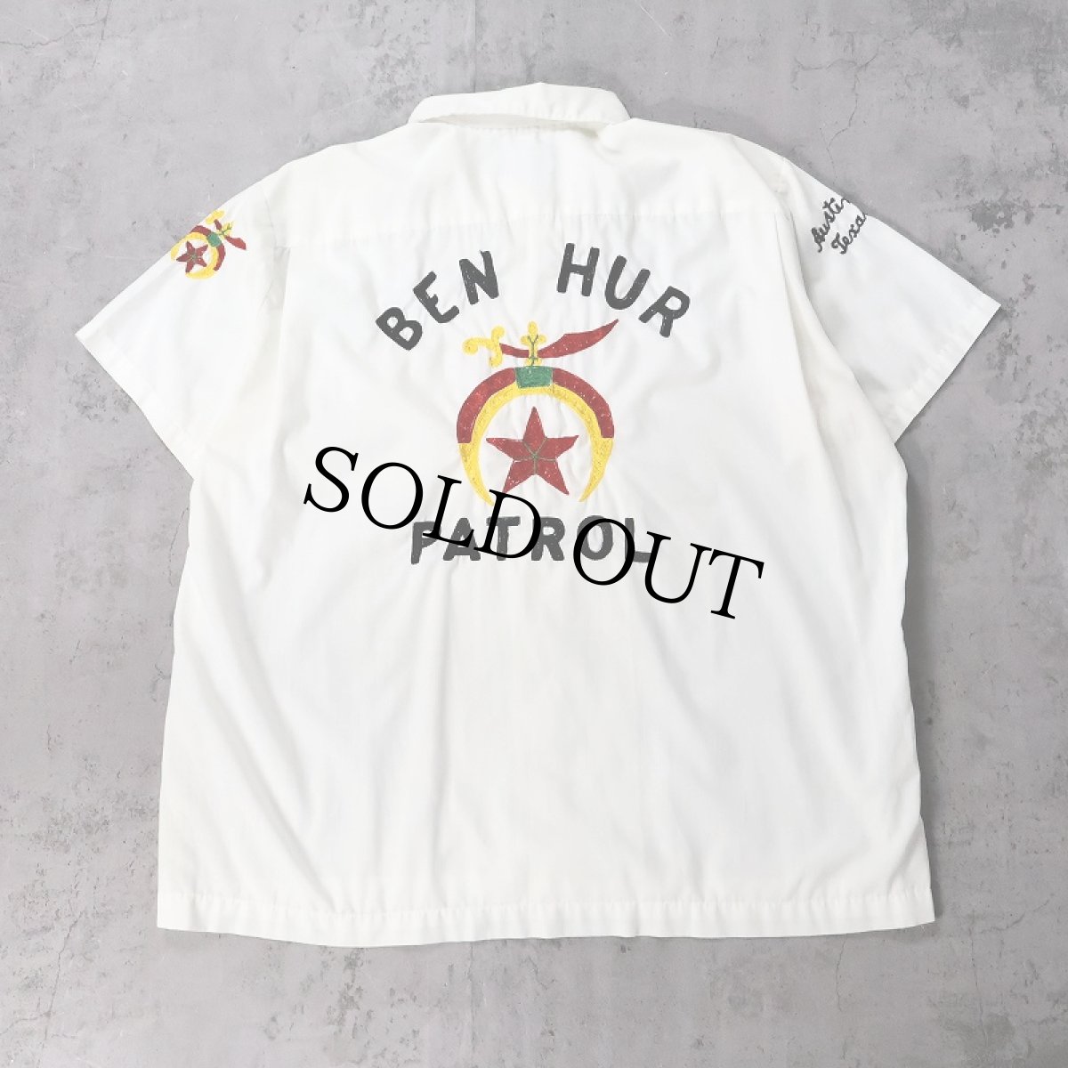 70's HILTON USA製 "BEN HUR PATROL" シュライナーズ チェーン刺繍 コットンボーリングシャツ XL [147853]