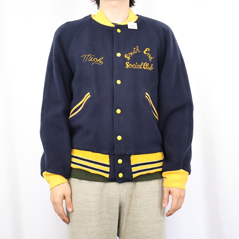 60〜70's "South End Social Club" チェーン刺繍 ウールスタジャン NAVY [147902]