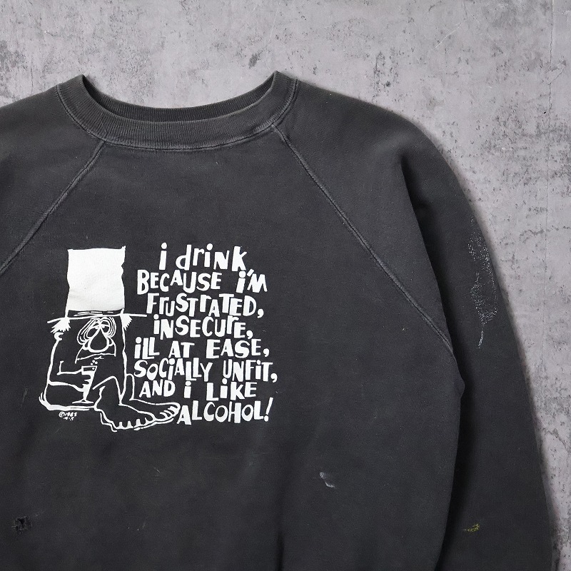 60's "I drink because I'm frustrated...." モンスタープリントスウェット BLACK [148141]