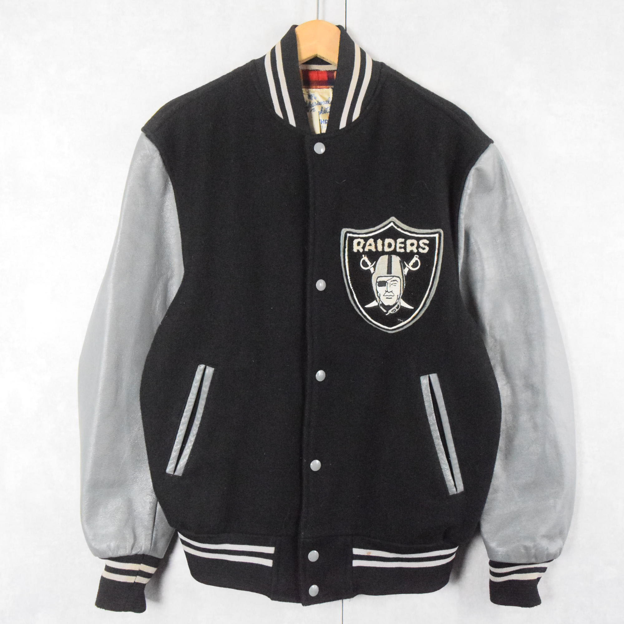 80's NFL RAIDERS CANADA製 フットボールチーム レザー×ウールスタジャン M [148173]