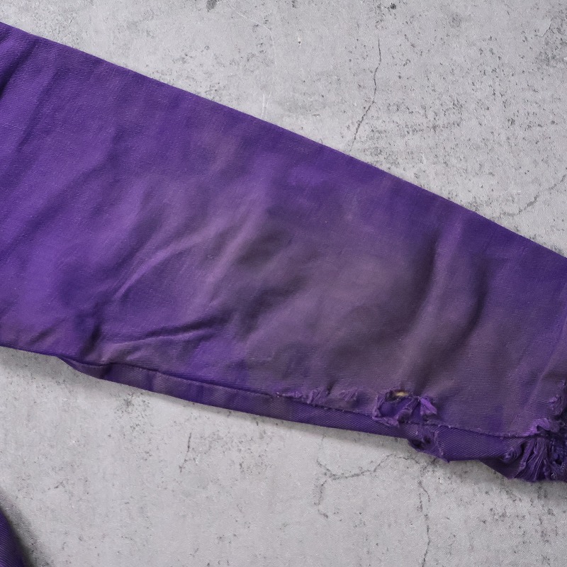 - 汚れや擦れ、ほつれやダメージなどがあり、ビンテージらしい雰囲気の一着です。