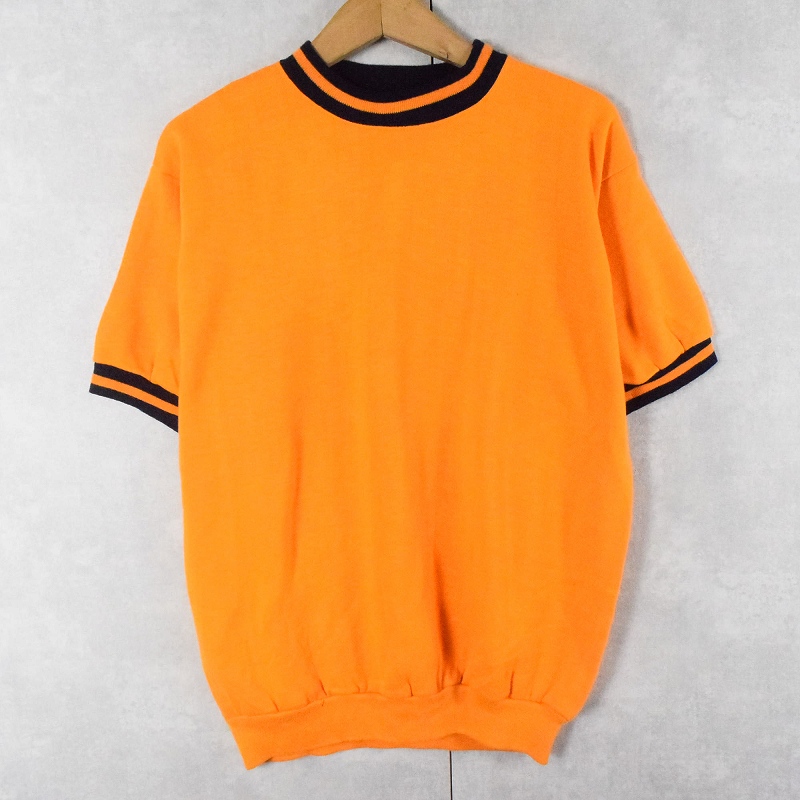 70's Creslan Casual ボーダーリブ 半袖スウェット L [148699]