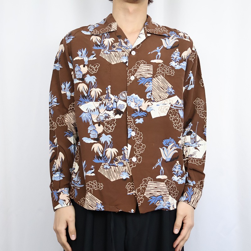 40's DUKE KAHANAMOKU オールオーバーパターン レーヨンアロハシャツ M [148710]
