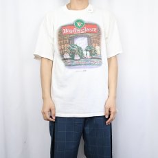 90's Budwiser ビールメーカーイラストプリントTシャツ L [149213]
