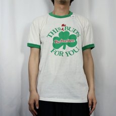 80's Budwiser USA製 ビールメーカープリントリンガーTシャツ L [149268]