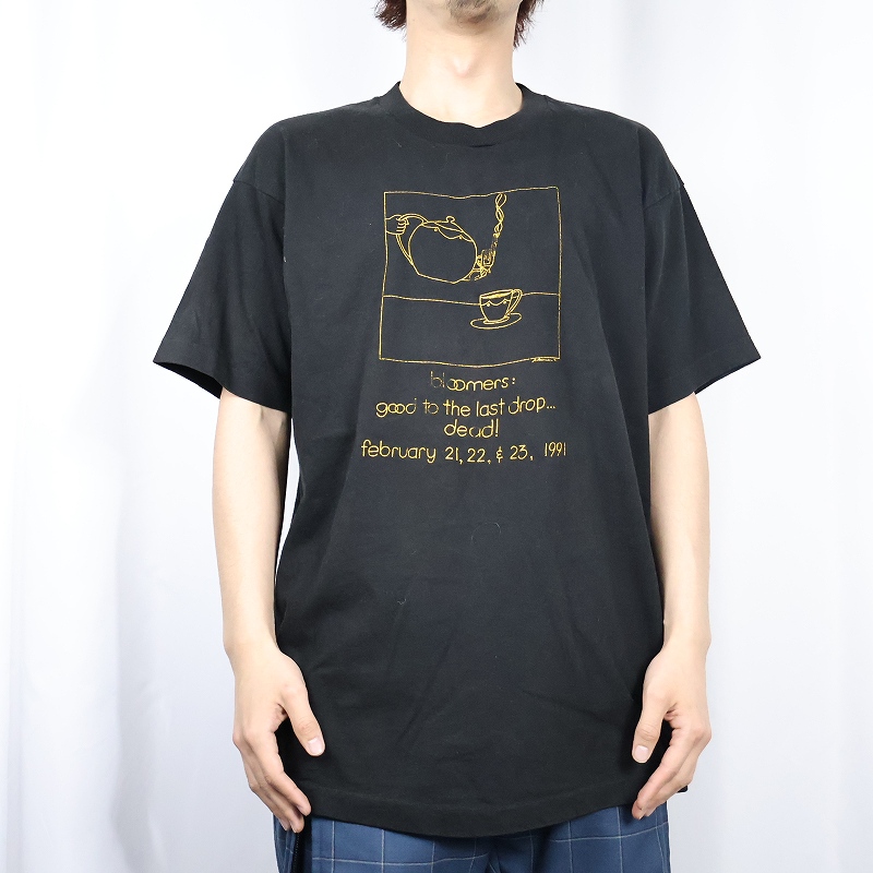 90's USA製 "bloomers: good to the last drop..." イラストプリントTシャツ BLACK XL [149310]