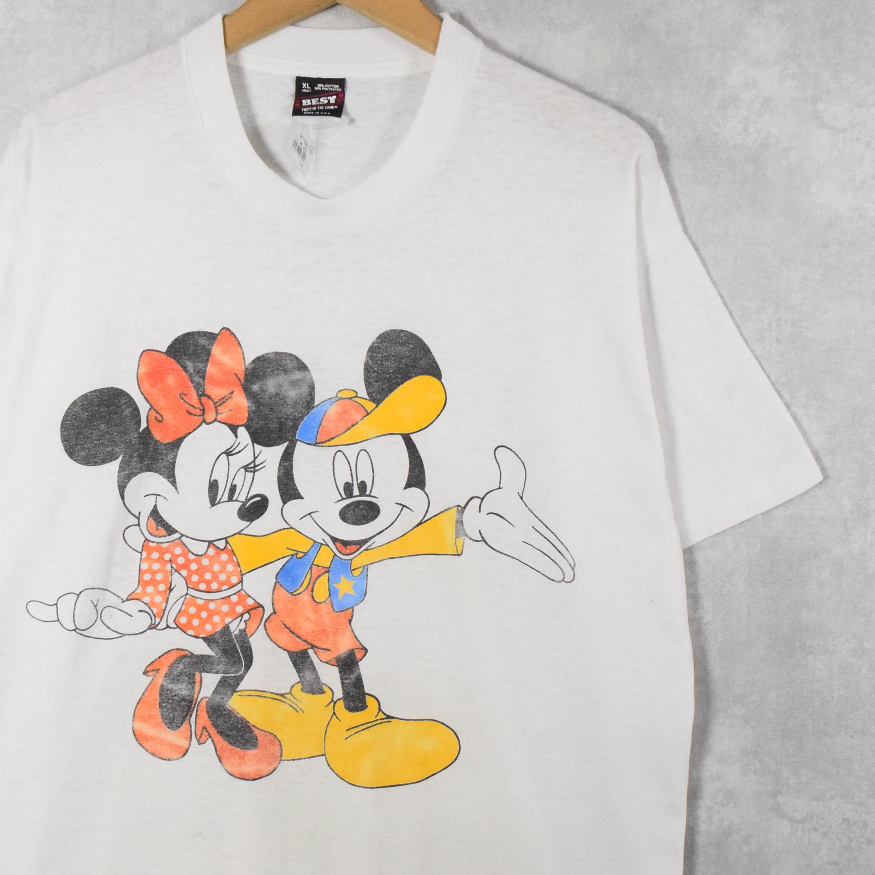 90's MICKEY MOUSE & MINNIE MOUSE USA製 キャラクタープリントTシャツ XL [149324]