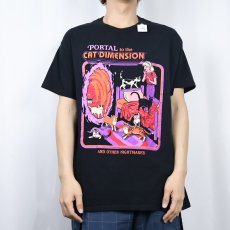 Steven Rhodes "PORTAL to the CAT DIMENSION" イラストプリントTシャツ BLACK L [149327]