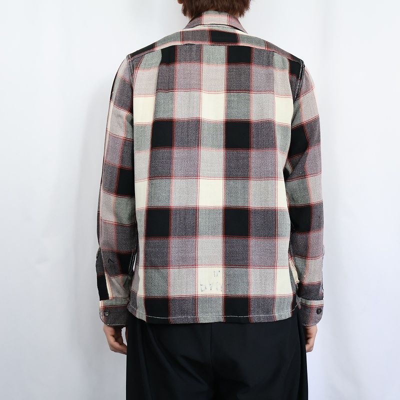 50〜60's ブロックチェック ウールオープンカラーシャツ [149499]
