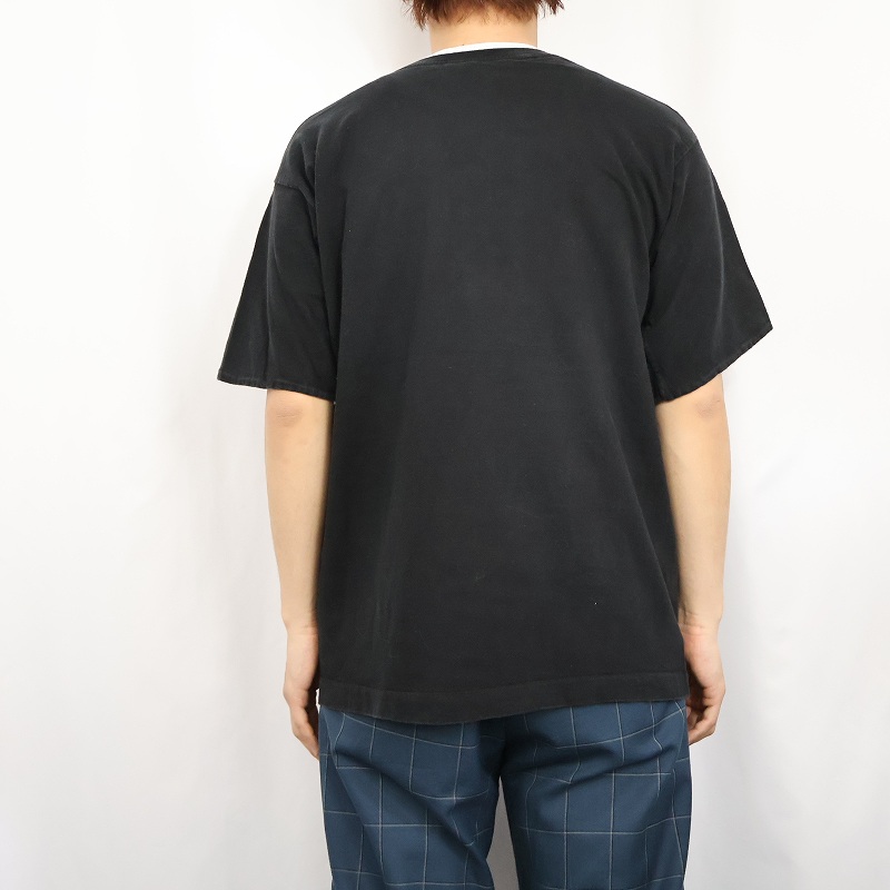 90's MUNSING WEAR USA製 レイヤードデザイン 無地Tシャツ BLACK M [149581]
