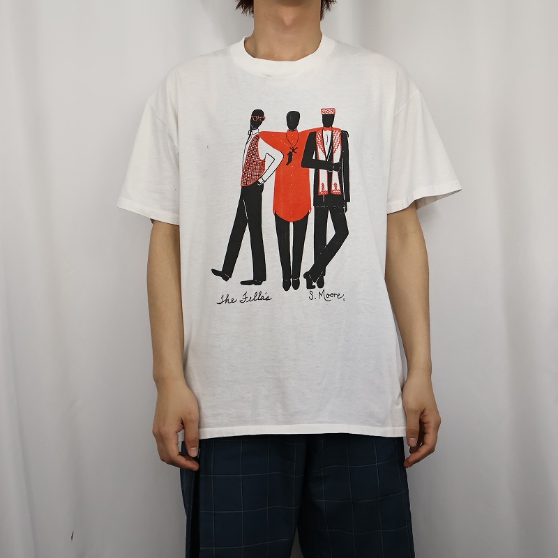 90's S.Moore USA製 "The Fella's" イラストプリントTシャツ L [149609]