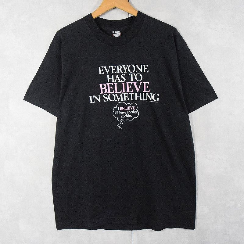 80's RIVERTOWN TRADING CORP USA製 "EVERYONE HAS TO..." メッセージプリントTシャツ BLACK XL [149643]