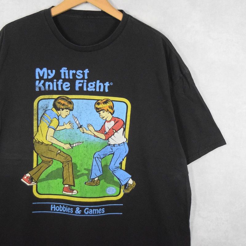 Steven Rhodes "My first knife fight" イラストプリントTシャツ BLACK [149836]