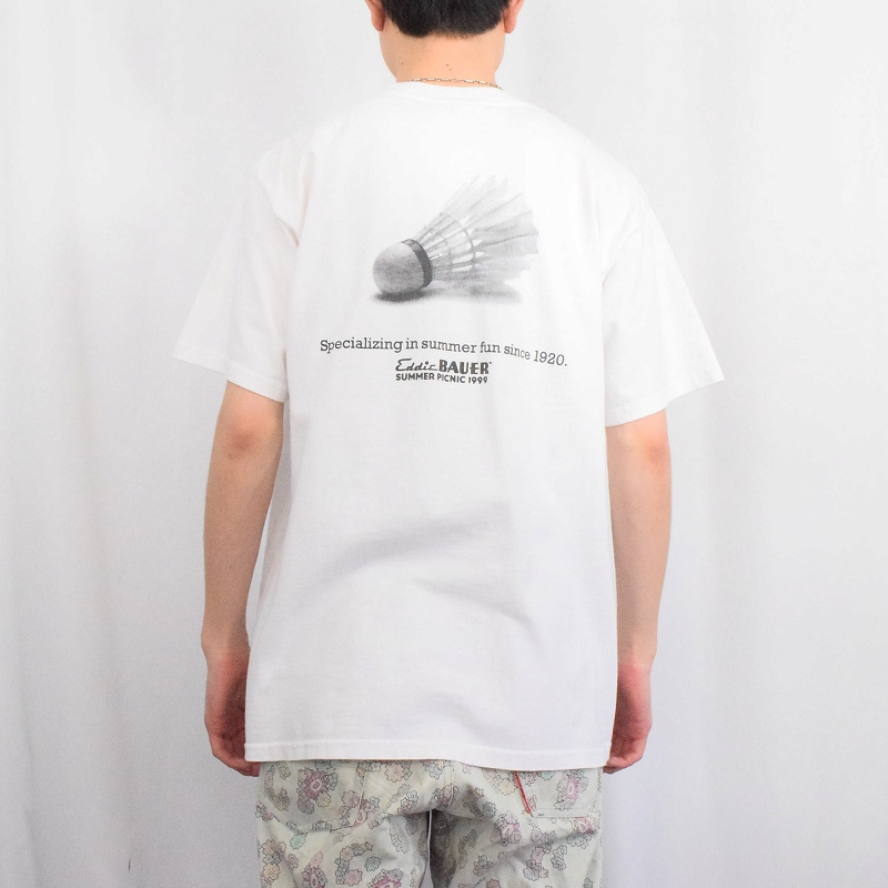 90's〜 Eddie Bauer "Specializing in summer fun since 1920." シャトルプリントTシャツ L [149862]