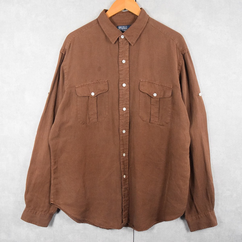 POLO Ralph Lauren シルク×リネン サファリシャツ XL [149878]