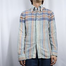 SHIRT WORKS ストライプ柄 × インディアンマドラス コットンシャツ M [149933]